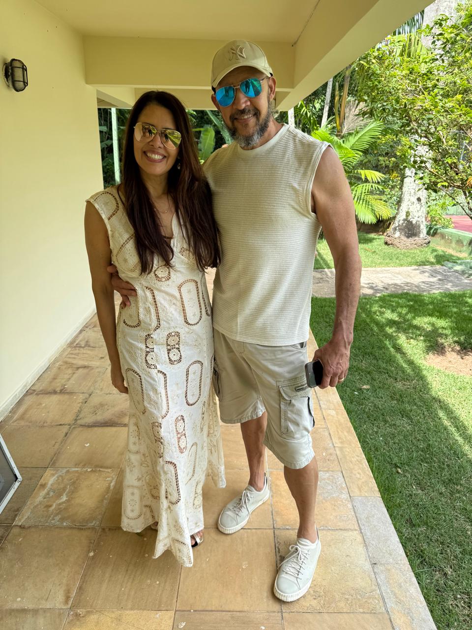Marcelo Peisino recebendo a irmã, Marcia, que mora em Orlando, em sua gostosa casa de praia na Barra do Jucu. Ela não vinha ao Brasil desde 2020.