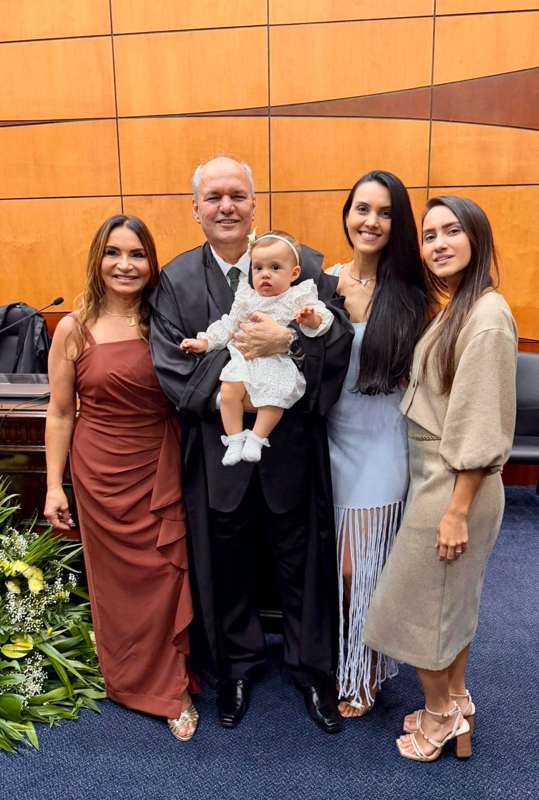 O novo presidente do TRE Namyr Carlos de Souza e sua Suely, as filhas Mayara e Menara e a netinha Helena