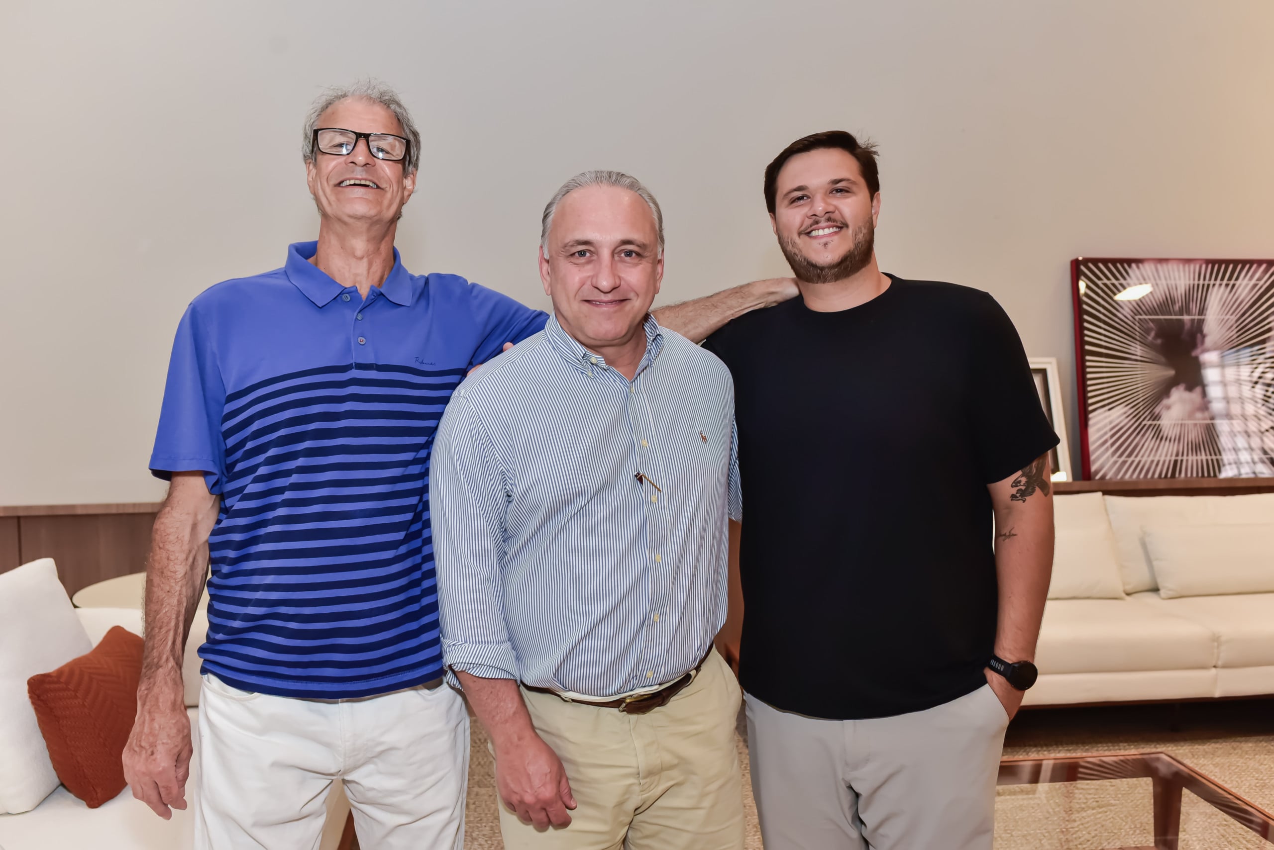Diego Freire, José Luiz Nunes e Fabiano Prezotti: confraternização na Casa Rosalina, em Vila Velha, com show do cantor Rodrigo Balla e Grupo Primeira Classe. Foto : Cloves Louzada