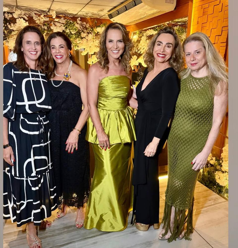 Leticia Lindenberg, Maíta Mota, a aniversariante Denise Gazinelli, Renata Pacheco e Sandra Fonseca : festejando a vida de Denise no Lareira Up, sábado.