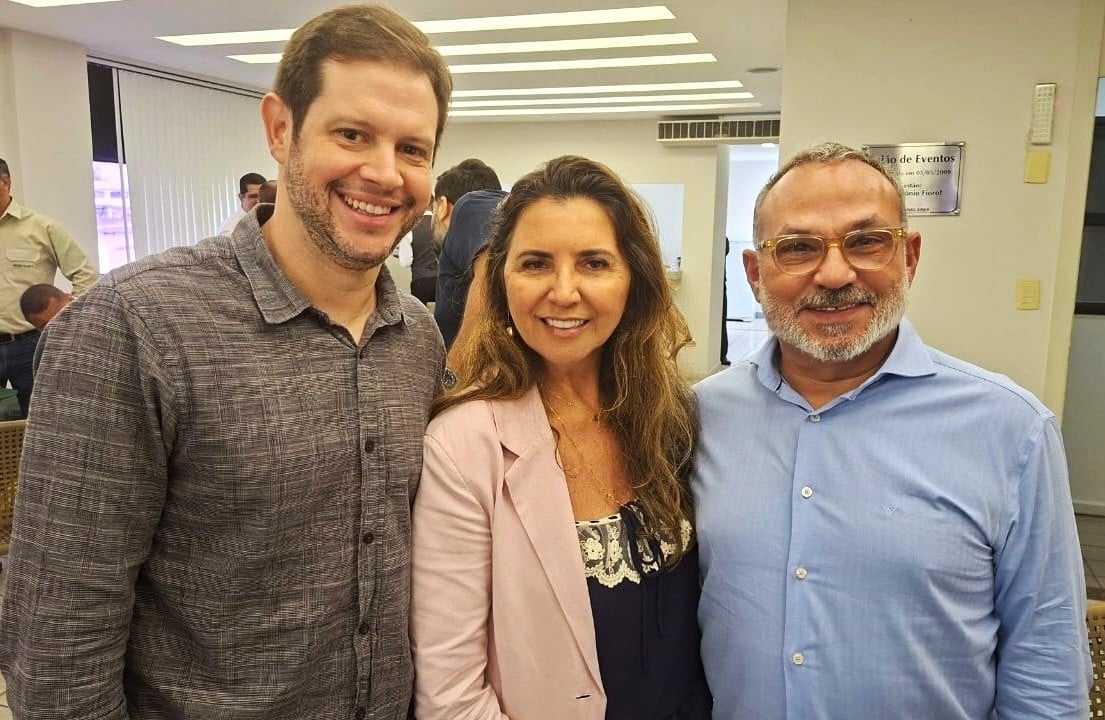 Henrique Theodoro, Mirela Souza e Alexandre Schubert no encontro da AEC