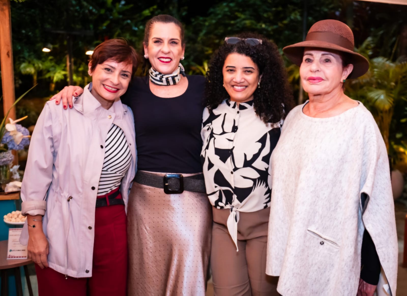 Lourdes Ferolla com Cleusa e Leticia. Ao lado, as produtoras de eventos Mariza e Maria Simões (fotos Ivan Willian e Amanda Walger)