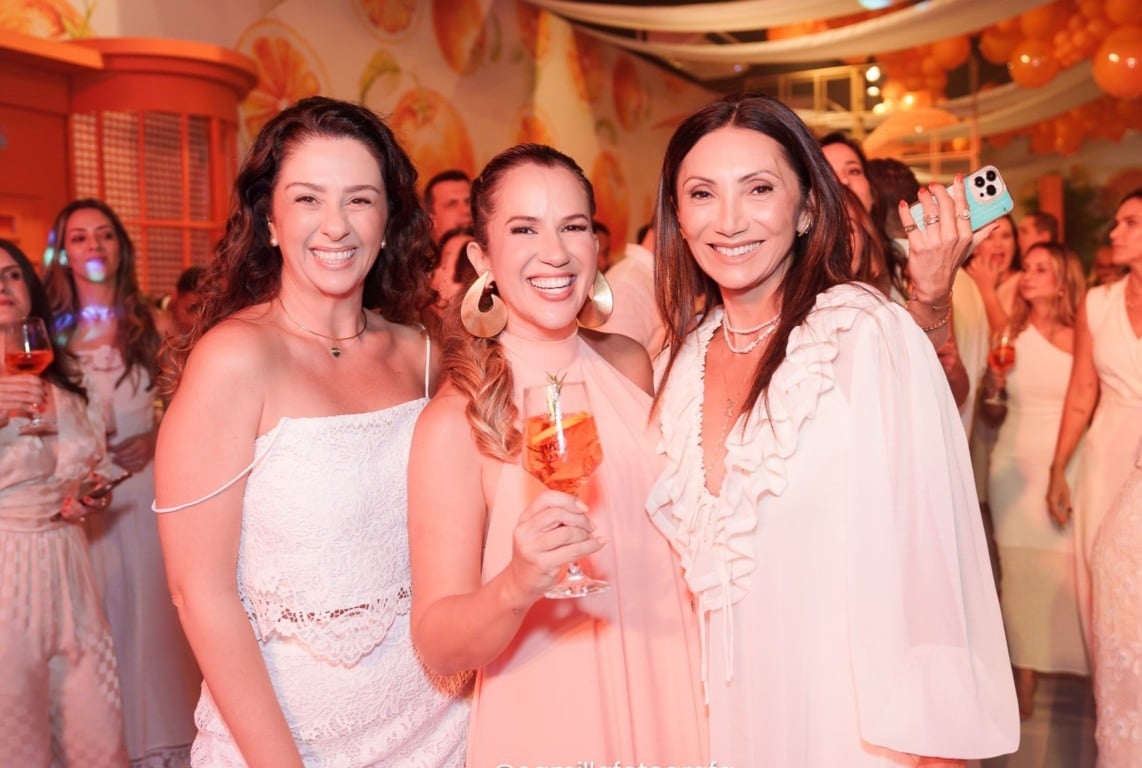 O sunset party de Rachel Pires que está entre Marianne Assbu e Kris Junqueira. O cenário escolhido foi a Casa Rosalina em Vila Vella (foto Camilla Baptistin)