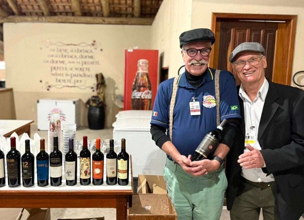 Meu amigo Franco Bastos sempre envolvido no desenvolvimento da região de Pedra Azul e adjacências, esbanjou carisma e fez sucesso atuando como voluntário na famosa Festa da Polenta, que agita Venda Nova do Imigrante há mais de 45 anos. Com ele, José Luiz Moyses, que é coordenador da Adega do Vinho. (foto)