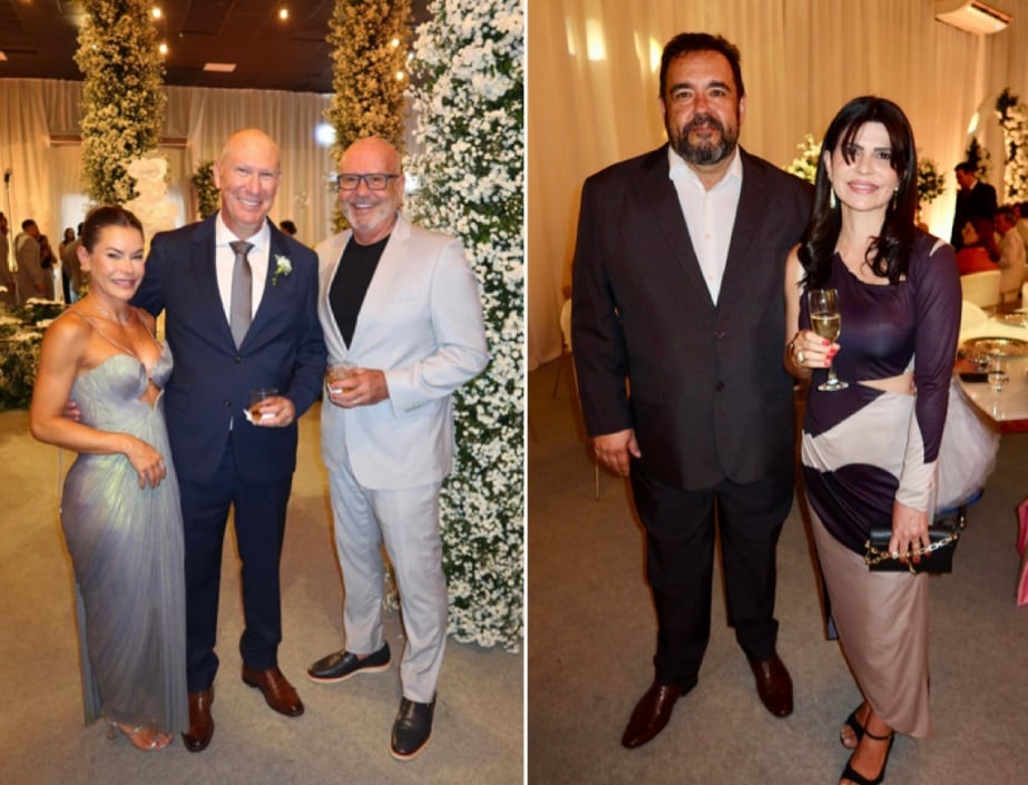 Um dos pontos altos da recepção foi a chegada dos noivos, aplaudidos por todos os convidados. Emocionante. A coordenação foi de Ilva Bustamante. Também estavam lá, Raphaela e Thiago Tristão, Rita e Raff Maciel, Jovania e Dorio Magnago, Aline e Dorio Guasti, Saula e Josemar Moro, Magna e José Moro, Glaudia e Wellington Broseguini.