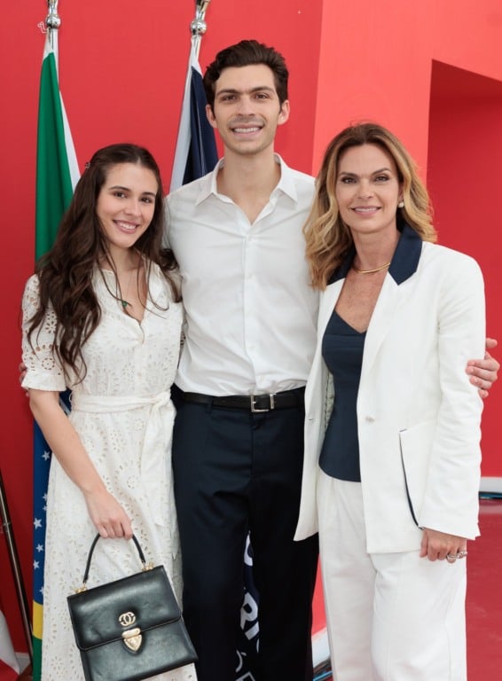 Mariana e seu filho Americo Buaiz Neto e a namorada Emily Varejão