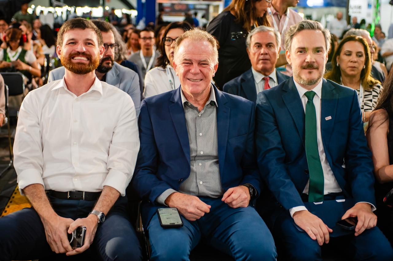 O Diretor Presidente da CESAN, Munir Abud, com o governo do Espírito Santo, Renato Casagrande, e o presidente da Associação Brasileira de Recursos Hídricos, Alexandre Kepler Soares: na abertura do XXVI Simpósio Brasileiro de Recursos Hídricos (SBRH), maior evento da área na América Latina, que acontece no Pavilhão de Carapina.