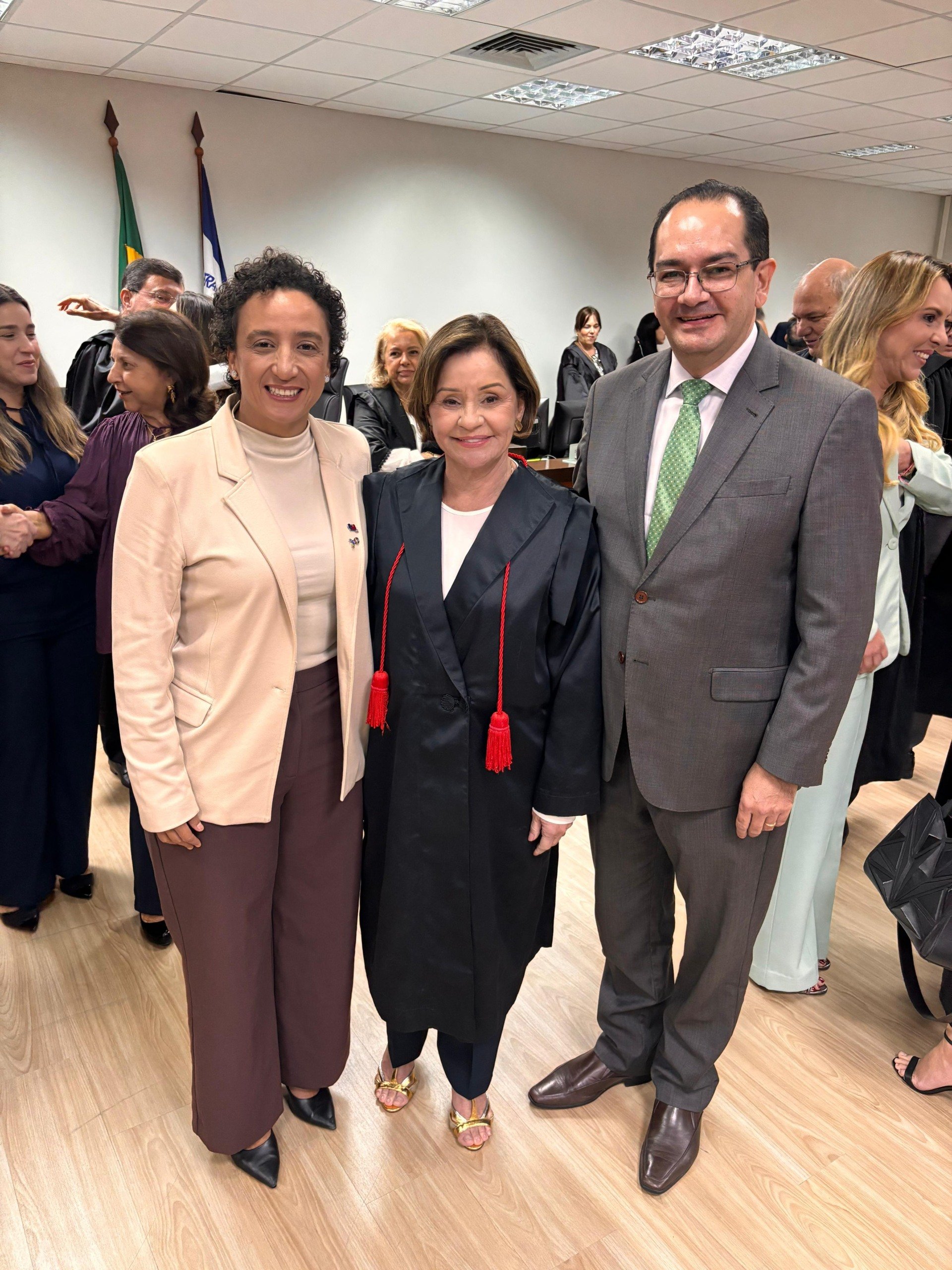 Érica Neves, presidente da OAB-ES, e Italo Scaramussa, presidente da OAB Serra, prestigiaram a eleição da desembargadora Janete Simões como primeira mulher a presidir o TJ-ES .