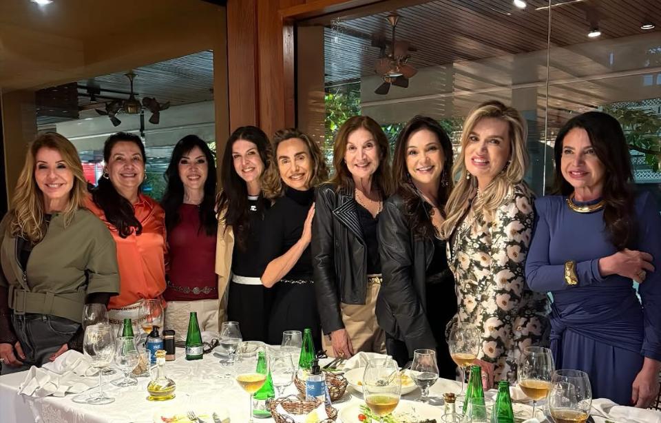 Tania Paste, Silvana Robson, Claudia Mameri, Remata Cola, Renata Pacheco, Josiane Dalvi, Valquíria Cheim e Ana Paola Teixeira: festejando Renata Cola no Aleixo.