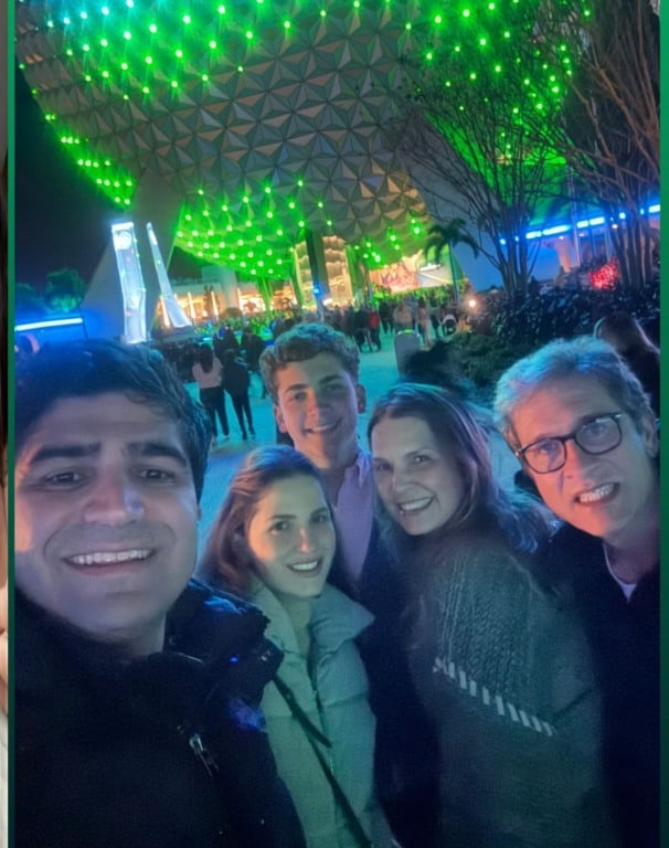 Eduardo Depes, Ana Luisa Hammer com o irmão Gabriel e os pais curtindo a Disney, no parque Epcot, lugar que escolheram para passar a virada de ano.