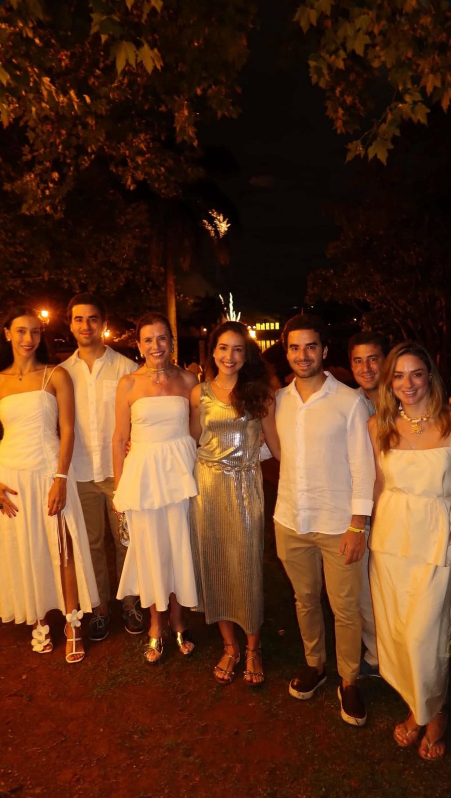 Camila Esquerdo, Felipe Mota, Ada Mota, Renata Brandão, Mateus Mota, Victor Mota e Ana Carolina Morales virando o ano no Quinta da Baroneza, em Bragança Paulista.