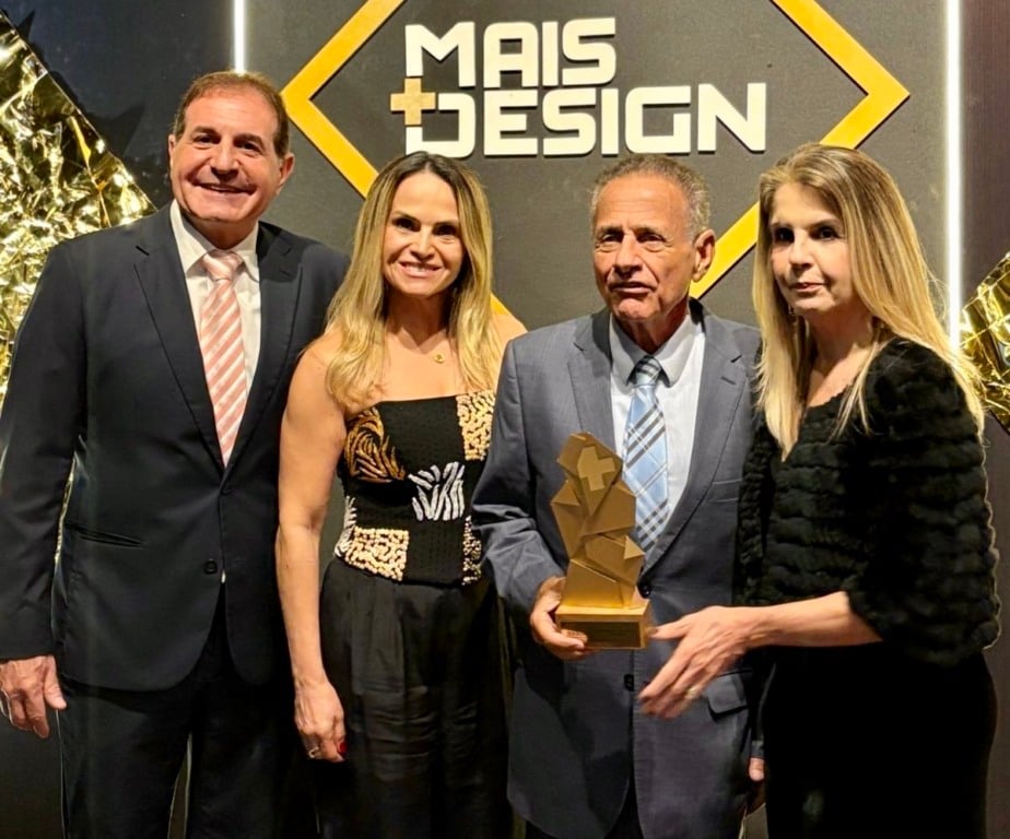 Rita e Tonho Bumachar Brotto com os amigos Soraya e Carlos Manato recebendo o troféu Mais Design para sua Pousada Itamaraty em Pedra Azul