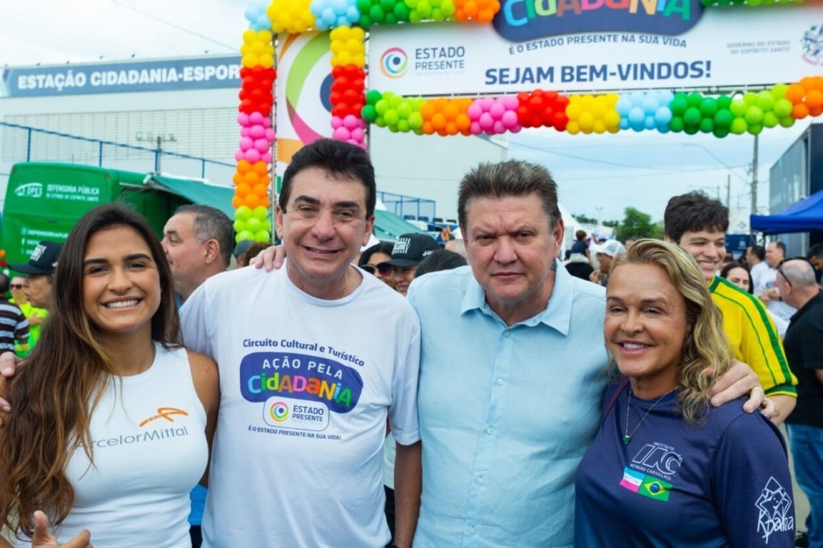 O prefeito Euclerio Sampaio e Junior Abreu, secretário-chefe da Casa Civil estiveram com Luna Hardman e Neymara Carvalho, campeãs do bodyboard na Ação pela Cidadania – Estado Presente, que reuniu mais de 10 mil pessoas no Parque O Cravo e a Rosa, em Cariacica.