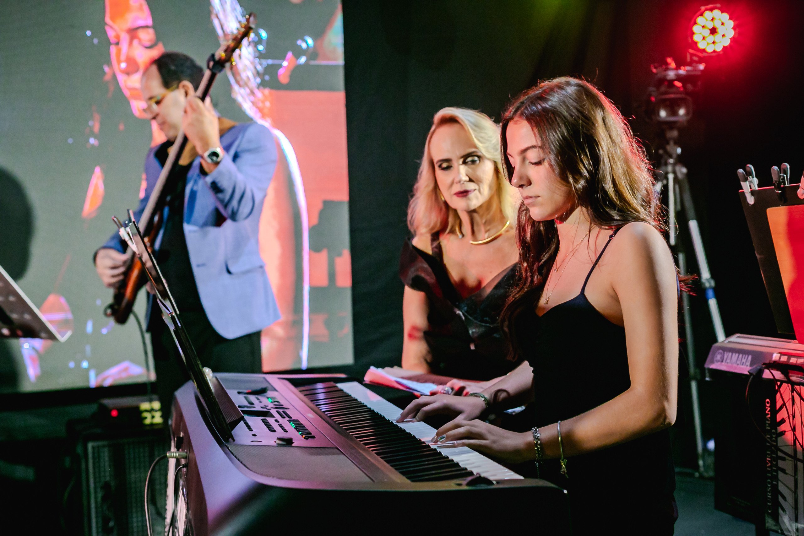 Silvânia Saadi Barros recebeu no Cerimonial Ferrari para sua tradicional audição de final de ano com alunos do Curso Livre de Piano e Teclado, que existe há 45 anos, formando gerações. Na abertura, Silvânia dividiu o piano com sua filha, Mariana Vanzo Bethônico, e sua mãe, Sônia Saadi Barros. A programação contou ainda com participações especiais do pianista Carlos Augusto Calmon Nogueira da Gama, da tecladista Tânia Catharina e de Roger Bezerra e banda. Myrinha Vasconcellos, veio de Brasília para se apresentar. Pedro Permuy participou pelo telão, direto da Tunísia.. Entre as músicas eleitas pelos 45 alunos, “Bohemian Rhapsody”, “Lanterna dos Afogados”, “Over The Rainbow”, “O Que Será?” e “Let It Be”.
