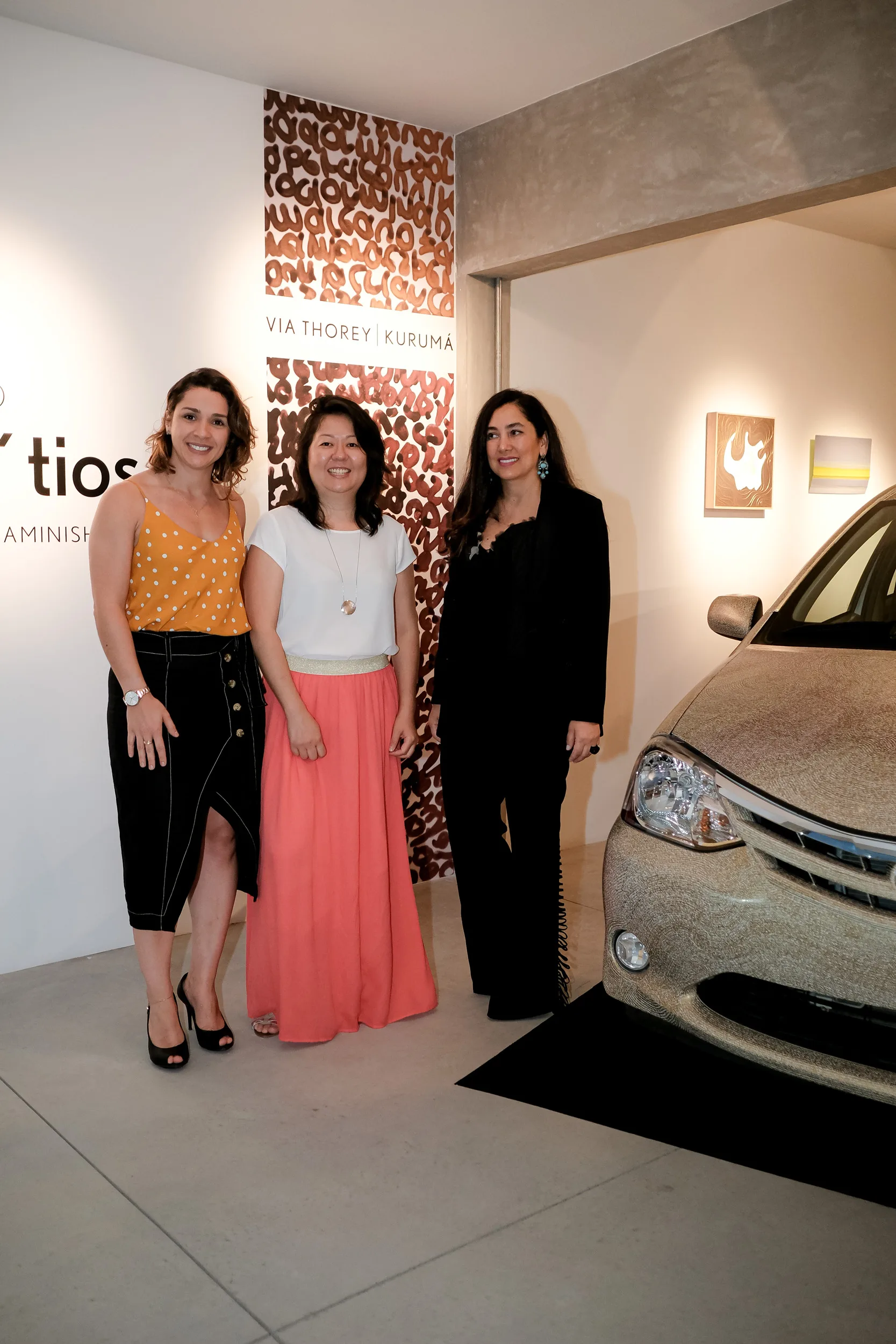 Marcelo Tinti, diretor comercial da Kurumá Vitória, recebeu convidados na galeria de arte Via Thorey, hoje (2), para a exposição E²lpis’Tios, da artista visual Erica Kaminishi. Com anos de atuação no Japão e hoje radicada na França, Erica usou a tradição japonesa e trechos de obra de Fernando Pessoa para customizar um modelo Toyota Etios Hatch. A ação, já realizada em São Paulo, é resultado do concurso “Etios Arte”, promovido pela montadora em parceria com o Museu de Arte Contemporânea de Sorocaba (Macs).