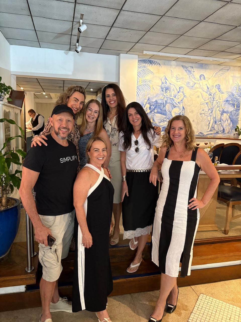 Paulo Balbino e as alunas Renata Pacheco, Beth Duarte, Cris Conde, Renata Cola, Aída Cruz e Marcella Surlo almoço para organizar a confraternização de Natal.