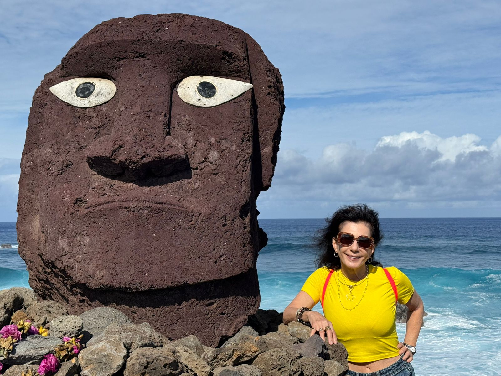 Ana Caiado em Rapa Nui, na Ilha de Páscoa, acompanhando o maridão, Hugo, no mundial de canoa.