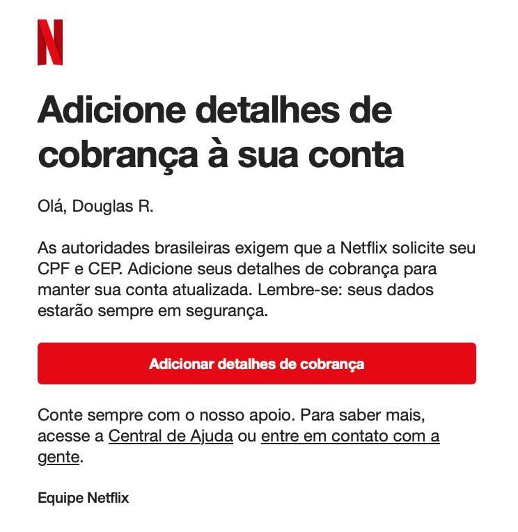 Nos últimos dias, usuários brasileiros da Netflix começaram a receber um e-mail solicitando a atualização de dados cadastrais, incluindo CPF e CEP. A mensagem chamou atenção e até gerou desconfiança, principalmente nas redes sociais, onde muitos levantaram a hipótese de golpe.