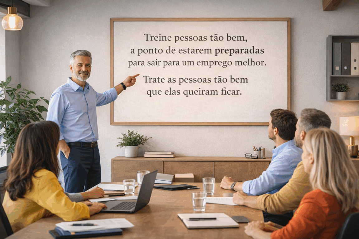 Existe uma frase que vem ganhando espaço em escritórios, salas de reunião e murais corporativos, simples, direta e profundamente provocadora: “Treine pessoas tão bem, a ponto de estarem preparadas para sair para um emprego melhor. Trate as pessoas tão bem que elas queiram ficar.”