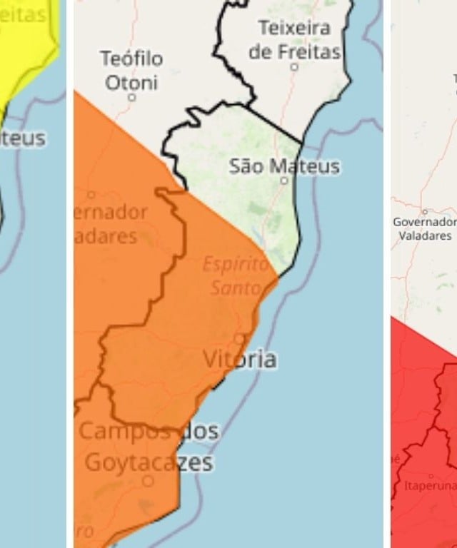 Já o terceiro alerta indica perigo potencial para chuvas intensas e afeta todas as cidades capixabas. Há previsão de chuvas e ventos intensos.