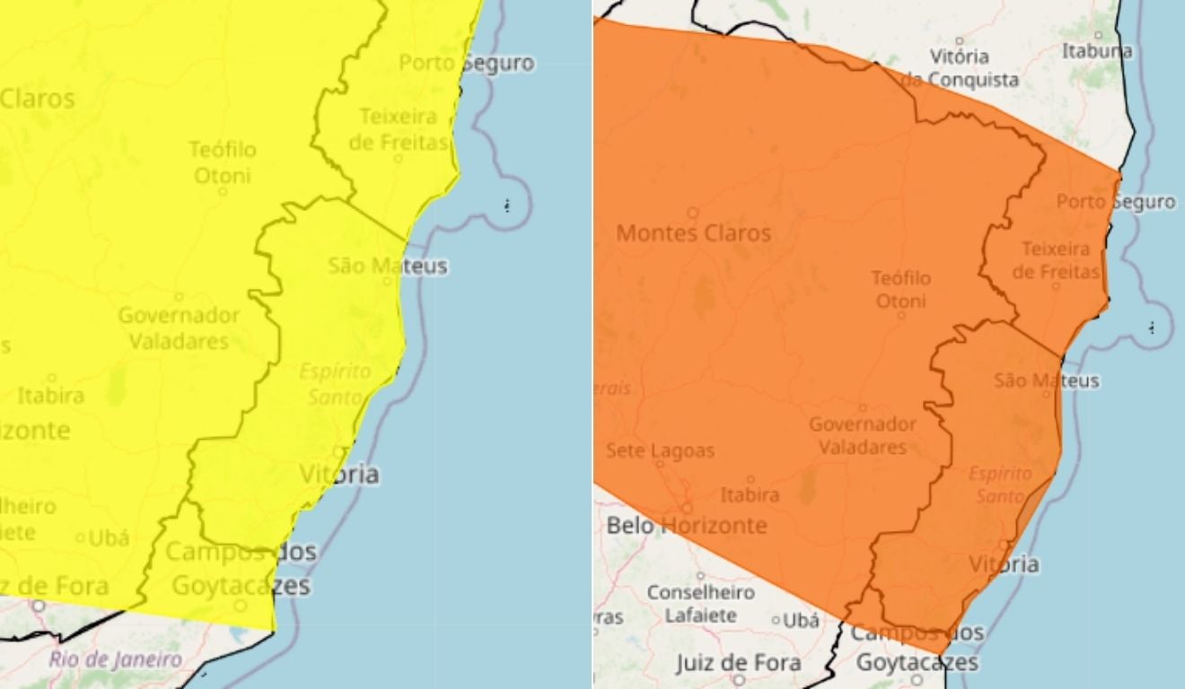 Além disso, o Inmet emitiu outro aviso para o Estado, de chuvas intensas, na cor amarela, que indica perigo potencial. O alerta meteorológico afeta todas as cidades capixabas e adverte para riscos potenciais de chuvas e ventos intensos.