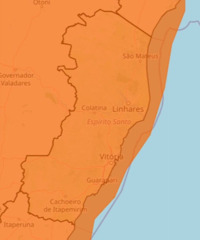 Um dos alertas foi classificado como laranja (perigo) pelo Instituto Nacional de Meteorologia (Inmet), o segundo maior grau de severidade. O outro alerta, amarelo (perigo potencial), também encobre todo o Estado. Ambos são válidos até a manhã de quarta (19).