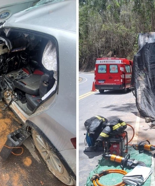 Um acidente entre um caminhão e um carro matou um homem de 66 anos e uma mulher, de 60 anos, na ES-166, na localidade de Santo Antônio do Oriente, em Venda Nova do Imigrante, na Região Serrana do Espírito Santo, na manhã desta quarta-feira (22).