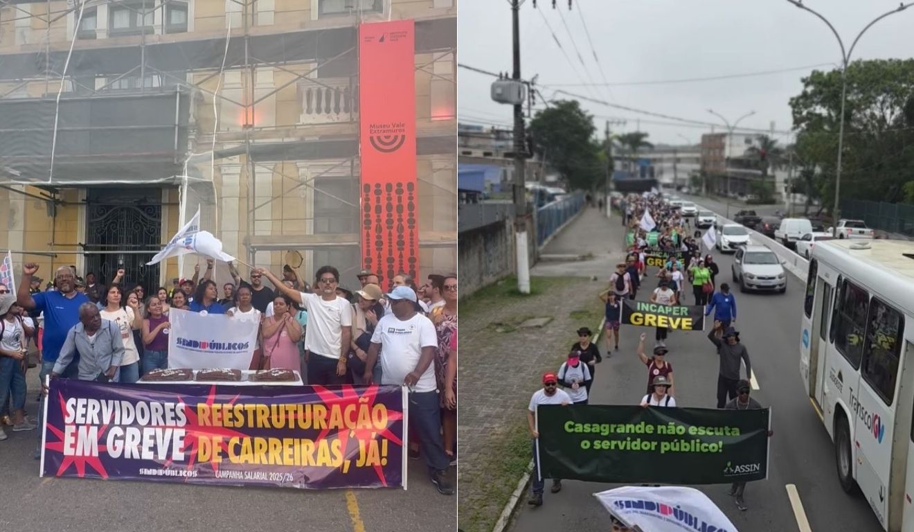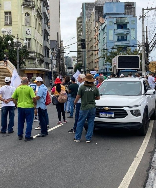 Um protesto de servidores públicos do Estado do Espírito Santo, em forma de caminhada, deu nó no trânsito no Centro de Vitória. A manifestação, por reposição salarial, começou por volta das 9h30, em frente ao Instituto Estadual de Meio Ambiente e Recursos Hídricos (Iema), em Cariacica.