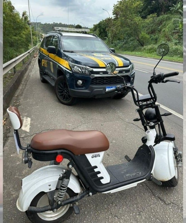Um jovem de 21 anos foi flagrado pela Polícia Rodoviária Federal (PRF) pilotando uma scooter elétrica adulterada, na BR-101, na Serra, na quinta-feira (04). O veículo, que deveria alcançar velocidade máxima de 32 km/h, estava alcançando 73 km/h.