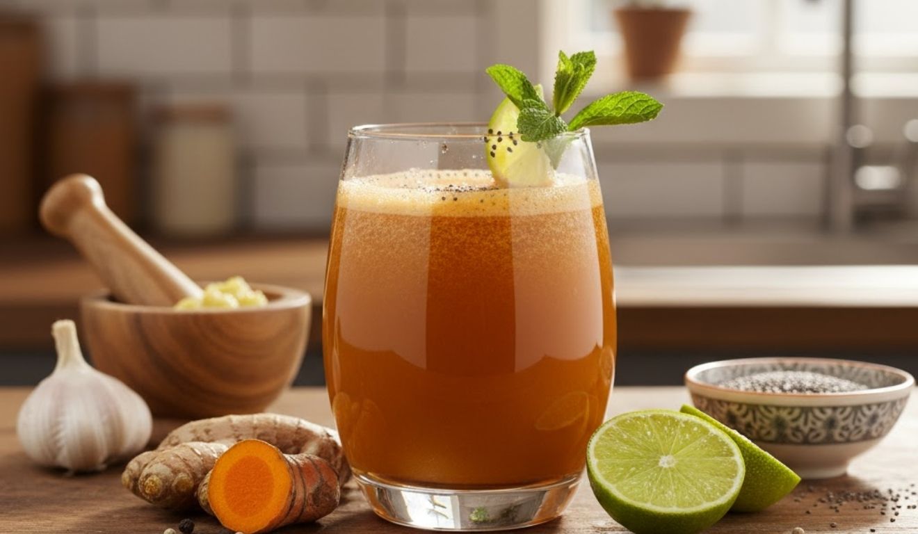 - Gengibre: Adicionar um pequeno pedaço (cerca de 2 cm) de gengibre fresco e descascado intensifica o sabor picante e aumenta as propriedades anti-inflamatórias e digestivas da bebida. O gengibre também ajuda a combater náuseas e inchaço.
