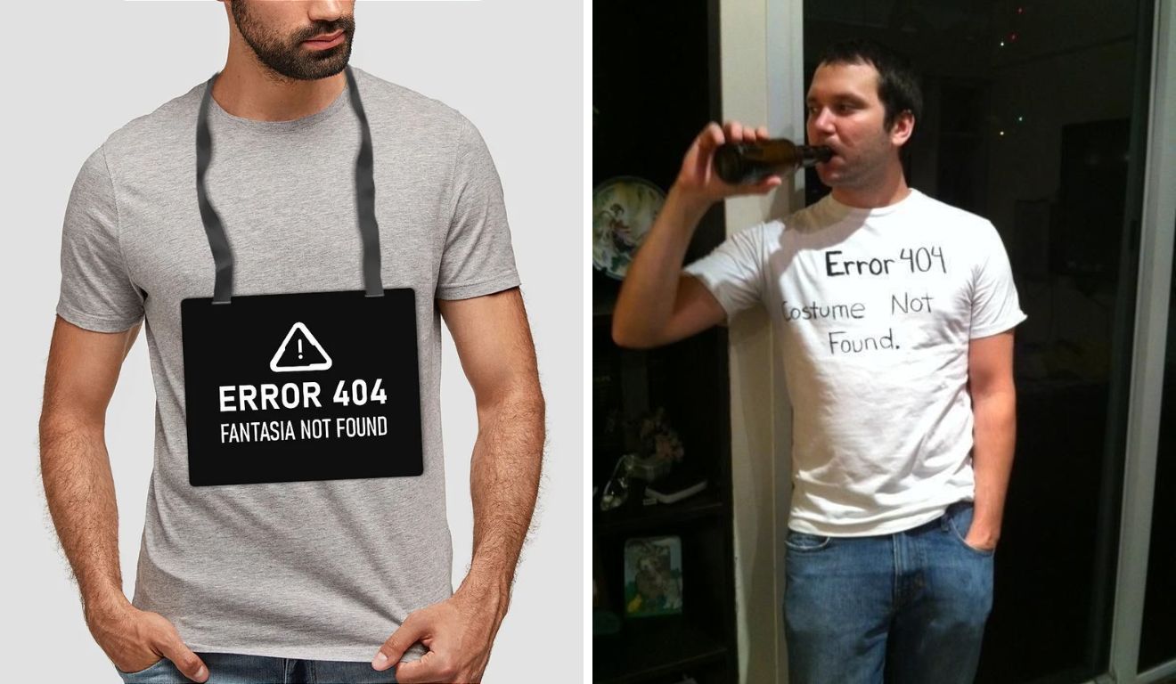 O toque final: Escreva na camiseta, com caneta para tecido ou tinta preta, a frase: “ERROR 404: FANTASIA NOT FOUND” (Erro 404: Fantasia Não Encontrada). É rápido, criativo e sempre arranca risadas.