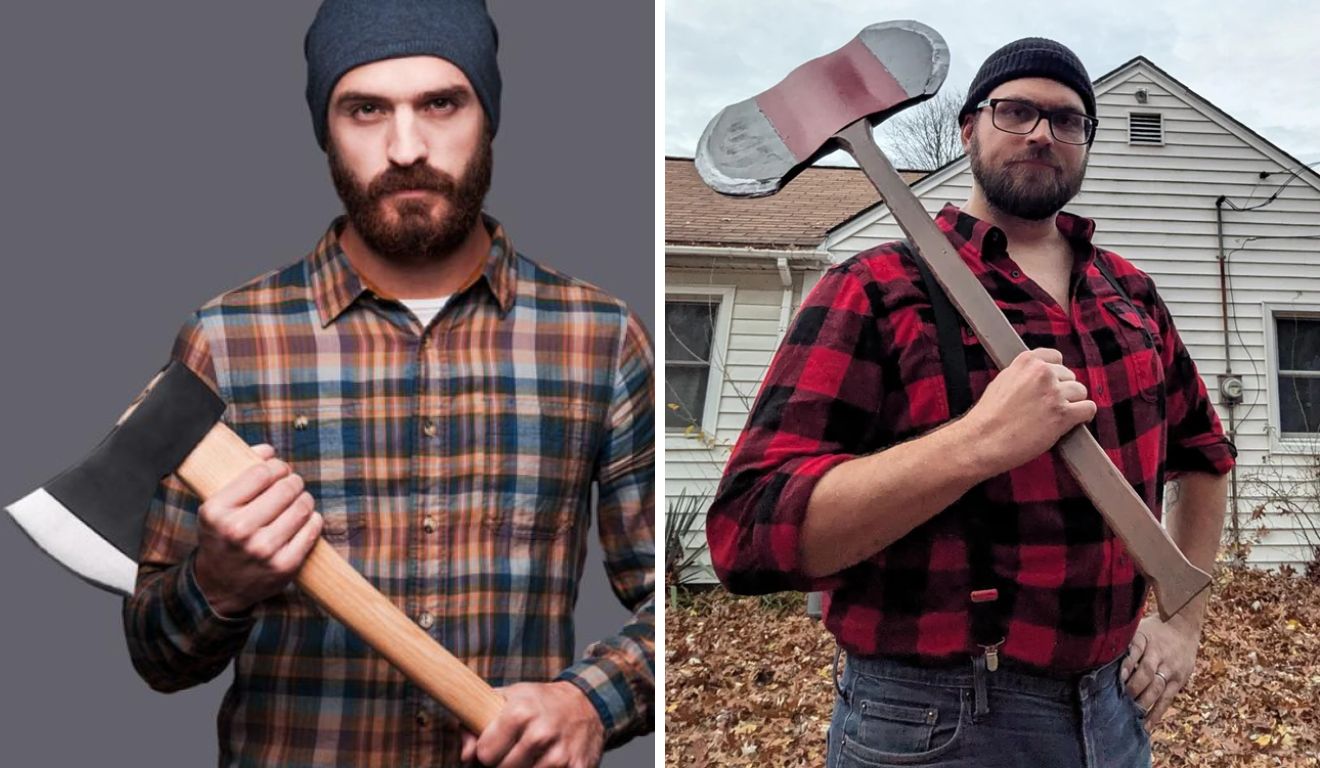 O toque final: Se não tiver barba, use lápis de maquiagem para dar um toque mais rústico. Um machado de brinquedo ou de papelão pintado finaliza o visual.