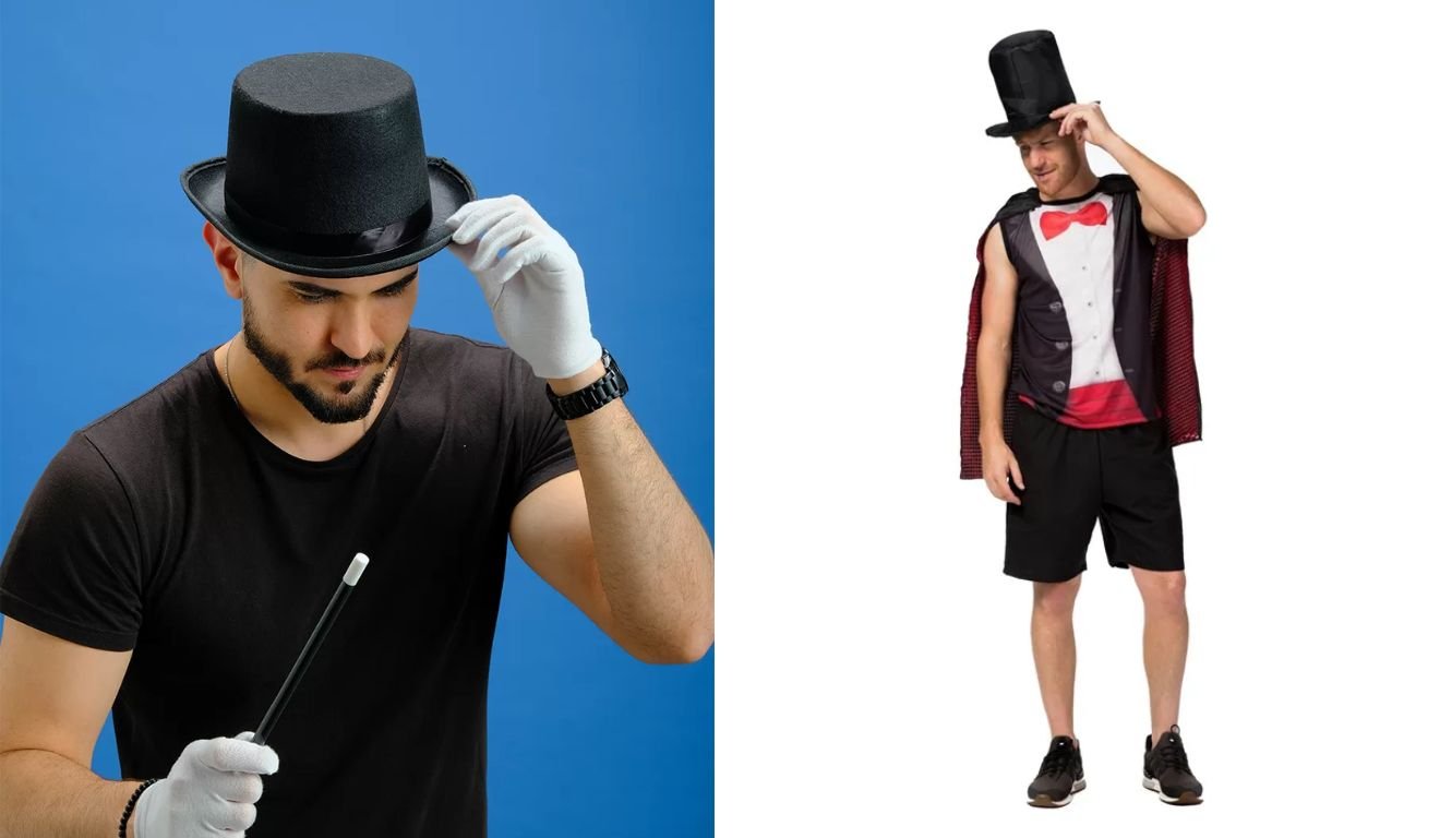 - Acessórios pontuais: Invista em um único acessório que seja o símbolo do seu personagem. Para o Mágico, é a cartola. Para o Lenhador, é o machado (de brinquedo). Para o Vampiro, são os dentes. Um acessório bem escolhido vale mais que uma roupa inteira.