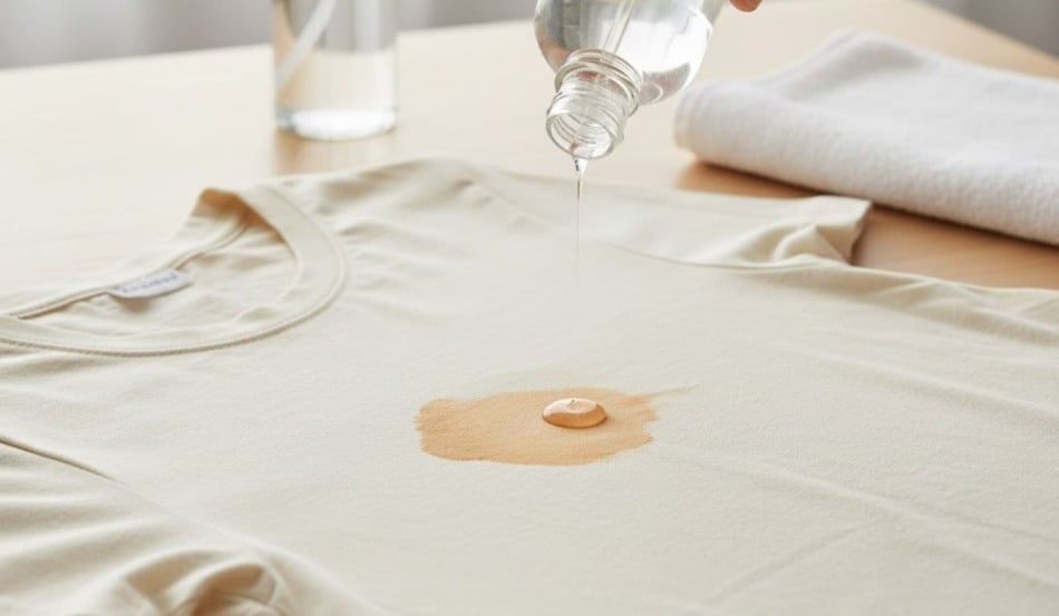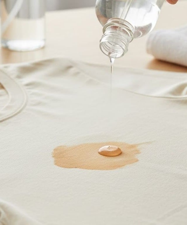 - Álcool ou removedor de maquiagem suave: para bases mais pigmentadas, aplicados com cuidado, ajudam a levantar a mancha sem danificar o tecido.