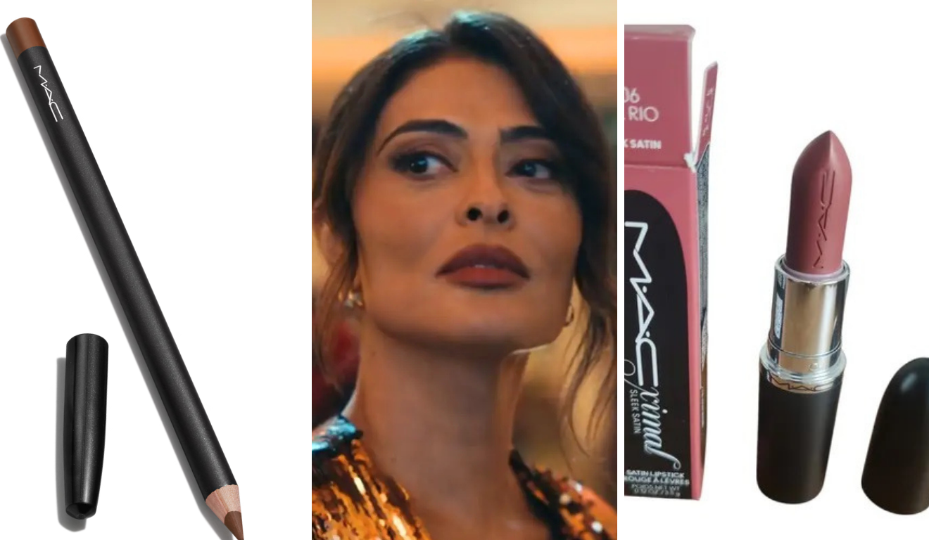 Para compor a boca marcante e ao mesmo tempo clássica de Juliana Paes, a caracterizadora apostou em tons marrons: