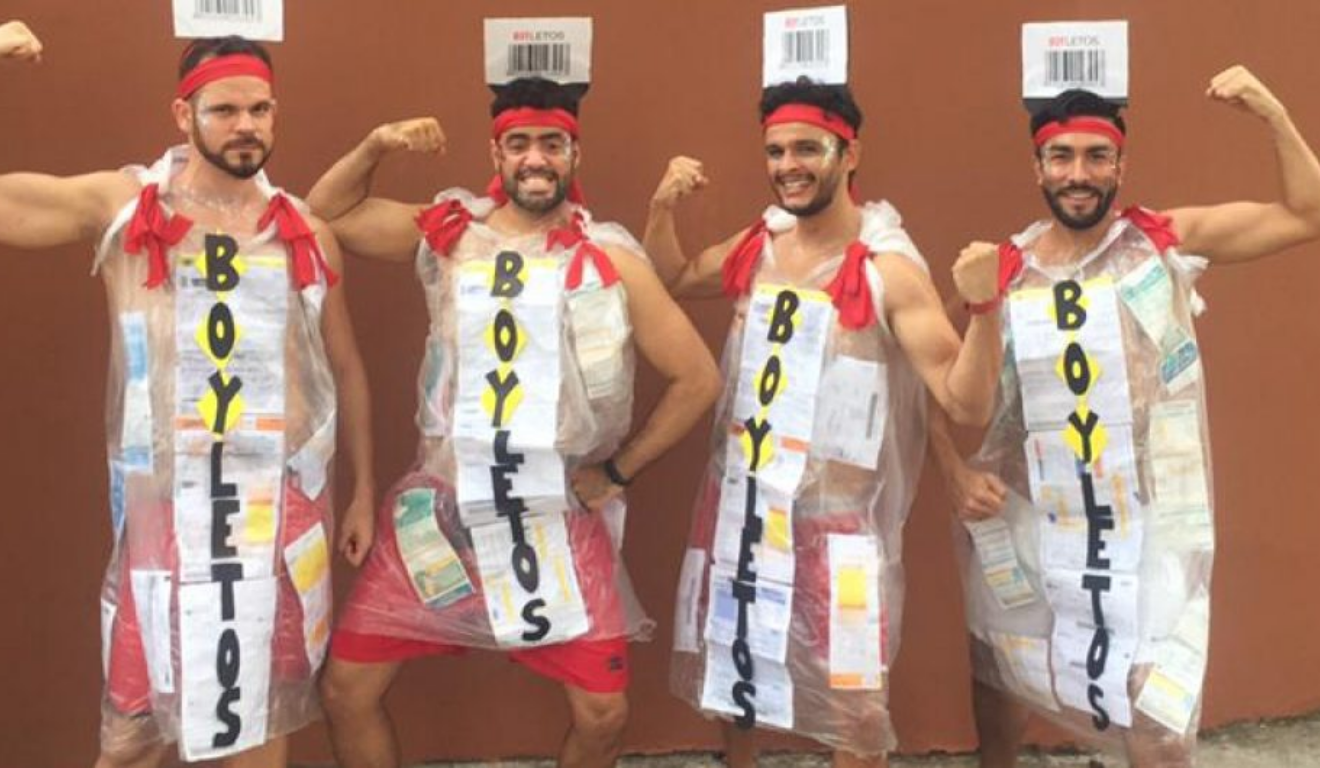 Transformar um símbolo do cotidiano em fantasia é uma marca do humor brasileiro, e os boletos são um exemplo claro disso. A ideia costuma envolver roupas feitas de papel ou plástico transparente, com códigos de barras, valores e datas de vencimento estampados. É uma fantasia coletiva que funciona justamente pelo exagero e pela identificação imediata com a realidade financeira de grande parte da população. O riso vem fácil, e o impacto visual cresce quando o grupo aparece completo, como se fosse uma verdadeira pilha de contas ambulante.