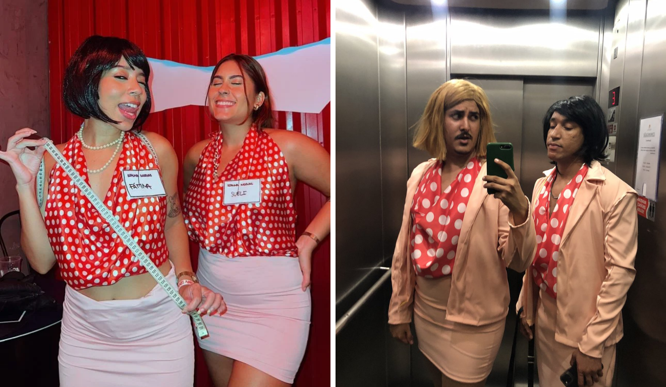 A novela Entre Tapas e Beijos deixou personagens marcantes na cultura pop nacional, e Fátima e Sueli seguem sendo referências quando o assunto é fantasia em dupla ou grupo. Vestidos ajustados, estampas chamativas, maquiagem carregada e acessórios exagerados ajudam a recriar o visual das personagens. A fantasia funciona tanto para quem deseja fidelidade estética quanto para quem prefere uma releitura mais caricata. O sucesso está no carisma das figuras e no reconhecimento imediato por parte do público.