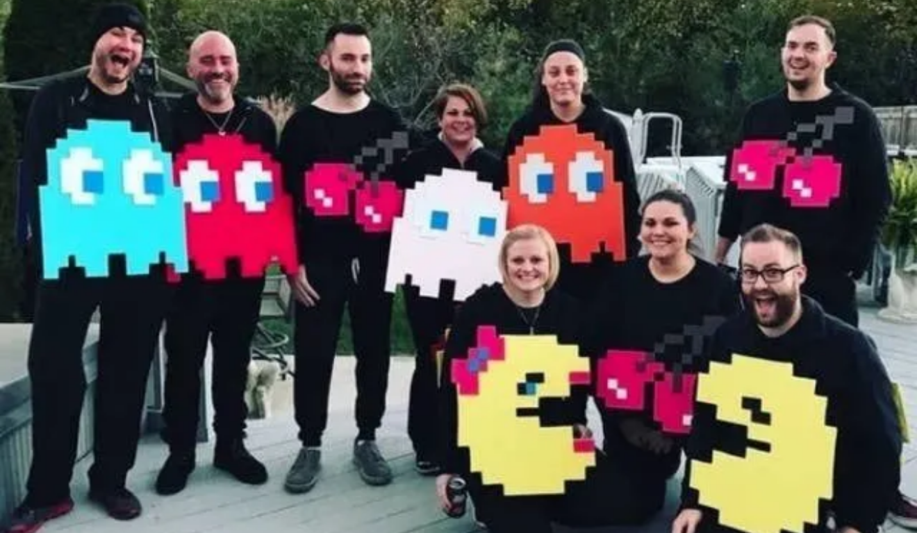 Inspirada no clássico dos videogames, a fantasia de Pac-Man aposta em cores fortes e formas geométricas. O personagem principal e os fantasmas coloridos criam um visual divertido e retrô, que se destaca principalmente em grupos. Muitas versões utilizam placas ou estruturas leves presas ao corpo, facilitando a mobilidade. É uma fantasia que mistura nostalgia e simplicidade, com grande impacto visual quando todos aparecem juntos.