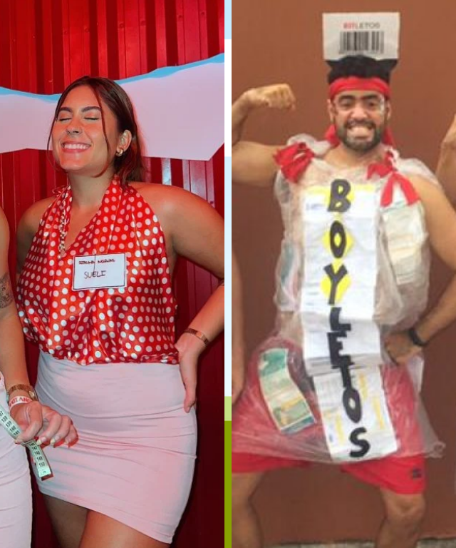 Transformar um símbolo do cotidiano em fantasia é uma marca do humor brasileiro, e os boletos são um exemplo claro disso. A ideia costuma envolver roupas feitas de papel ou plástico transparente, com códigos de barras, valores e datas de vencimento estampados. É uma fantasia coletiva que funciona justamente pelo exagero e pela identificação imediata com a realidade financeira de grande parte da população. O riso vem fácil, e o impacto visual cresce quando o grupo aparece completo, como se fosse uma verdadeira pilha de contas ambulante.