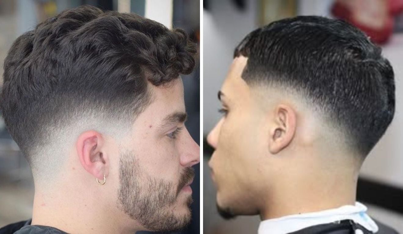 - Características: Não é um fade que circula toda a cabeça. O degradê começa atrás da orelha e se curva levemente, como um semicírculo, em direção à nuca.