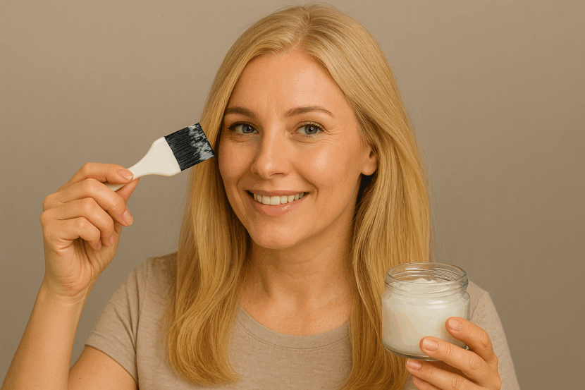 Em um recipiente, misture bem os ingredientes até obter uma textura homogênea. Em seguida, lave o cabelo com shampoo e retire o excesso de água. Aplique a mistura mecha por mecha, massageando suavemente e garantindo que todos os fios fiquem cobertos.