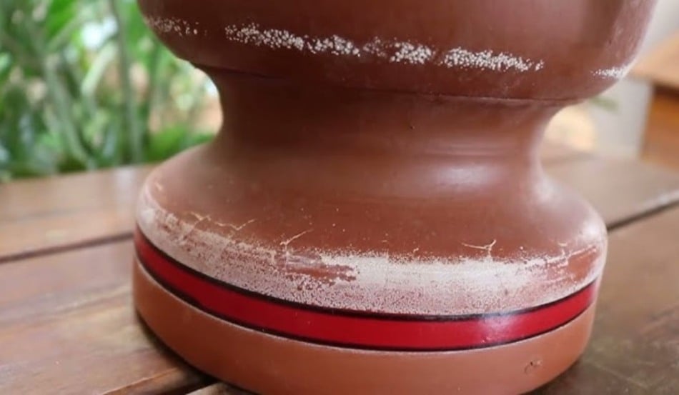As manchas brancas no filtro de barro têm um nome específico e um motivo para existirem. O fenômeno é conhecido como efusão ou, mais popularmente, efervescência salina.