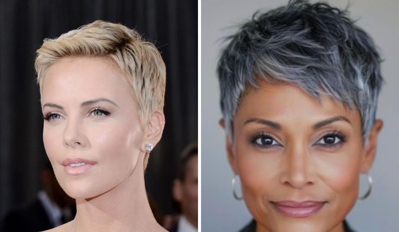 O pixie continua sendo um dos cortes mais emblemáticos quando o assunto é rejuvenescer o visual. A nova versão do estilo, conhecida como pixie moderno, mantém a essência original do corte, mas ganha linhas mais suaves e versáteis. O comprimento fica rente à nuca e mais alongado no topo da cabeça, criando leveza e um efeito que estica visualmente o rosto.