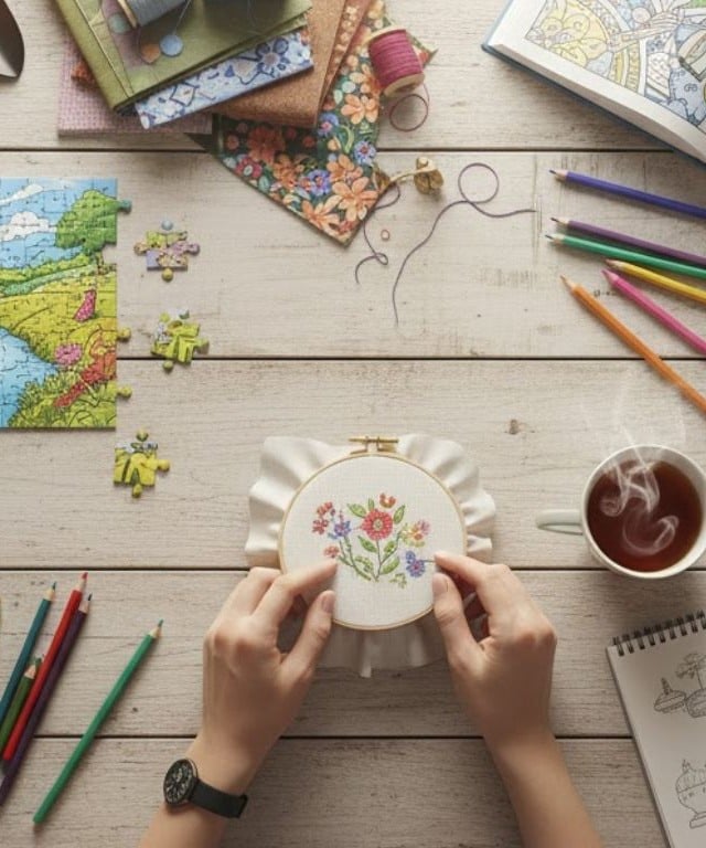 Hobbies manuais, como bordado, jardinagem e pintura, são exemplos de práticas acessíveis que ajudam a desacelerar e promovem bem-estar físico e mental.