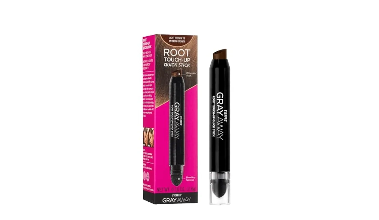 Para quem prefere uma alternativa sem spray, o Touch-Up Stick da marca Dazzle vem ganhando espaço nas prateleiras de farmácias e perfumarias. Trata-se de um bastão retrátil que funciona como um batom, com ponta arredondada e textura cremosa.
