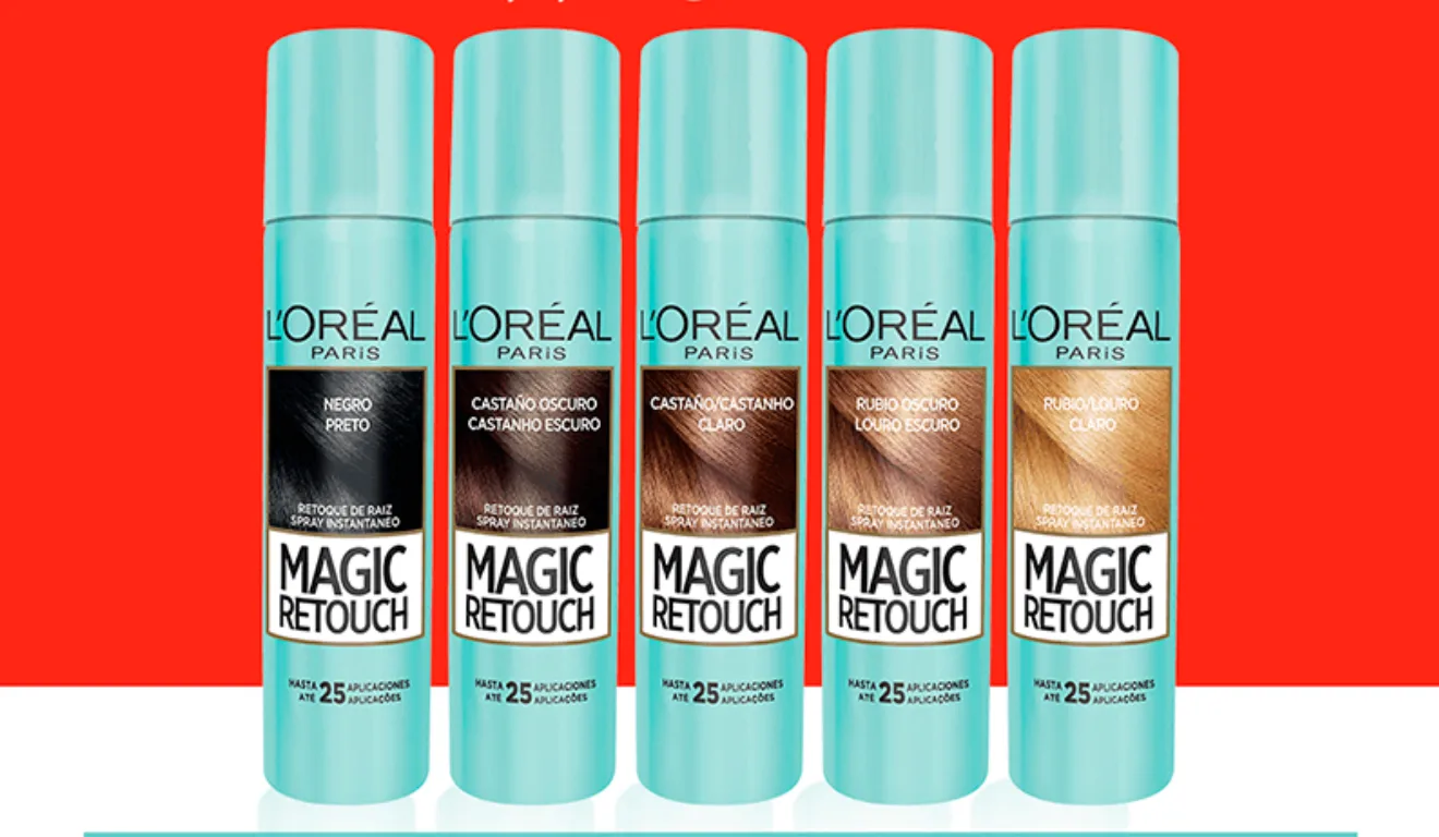 Um dos primeiros a ganhar destaque mundialmente, o Magic Retouch da L’Oréal Paris consolidou-se como líder na categoria de retoque instantâneo de raiz. O produto é um spray colorido de aplicação direta que promete cobrir os fios brancos em apenas três segundos.