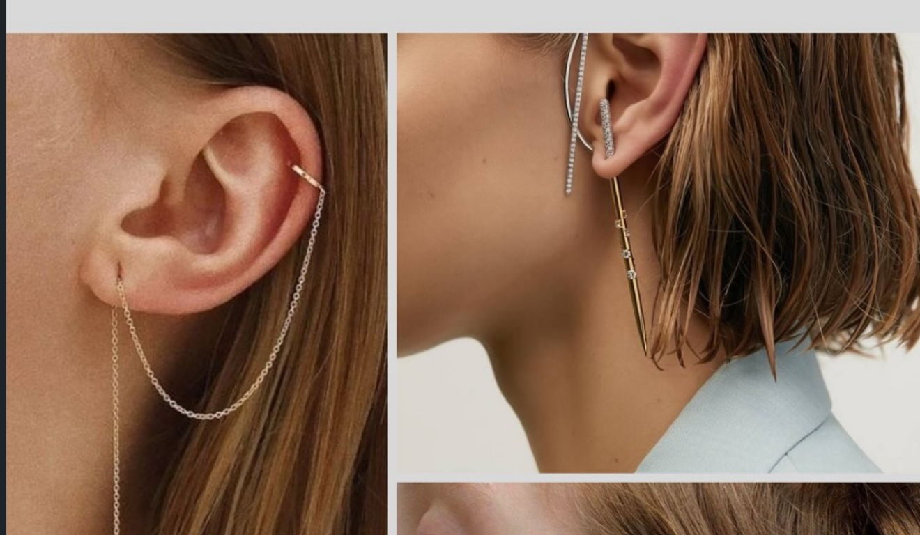 O ear cuff mantém relevância e aparece repaginado com detalhes texturizados, aplicações de brilho e variações de volume. O acessório contorna a orelha e cria um efeito de composição elaborada sem exigir múltiplos furos. Em 2026, os modelos mais marcantes exploram linhas contínuas, pérolas modernas e estruturas que se estendem até a parte superior da cartilagem.