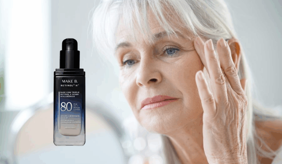 Com a Base Líquida Invisível FPS80 Make B. Retinol³ H+, a pele madura tem agora um aliado que une maquiagem e tratamento em um só produto, garantindo beleza, cuidado e proteção em cada aplicação.